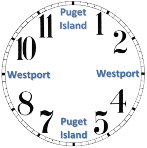 Puget Island at 00 and 30 past the hour.